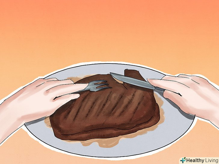 Під час їжі намагайтеся користуватися ножем і виделкою, а не просто виделкою.відрізайте стільки, скільки зможете покласти в рот за раз (вважається грубим наколювати маленьких шматочки від більшого на вилку). Природно, тримайте рот закритим під час їжі. Строго кажучи, уникайте всього, що передбачає демонстрацію вмісту вашого рота, його переповненості або можливості випльовування або іншого безладу. Ще не стукайте столовими приборами по посуді. Після закінчення трапези покладіть ніж і вилку поруч посередині тарілки.