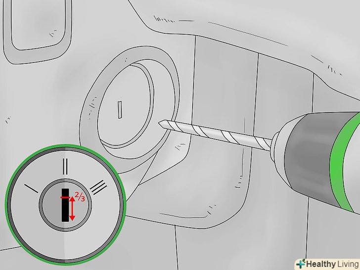 Розташуйте дриль на замковій щілині на відстані в 2/3 від її верхнього краю.мета цього методу-зруйнувати замикаючі штифти і завести машину за допомогою викрутки, а не ключа. Зазвичай це робиться в тому випадку, якщо ключі від машини Загублені.[6]