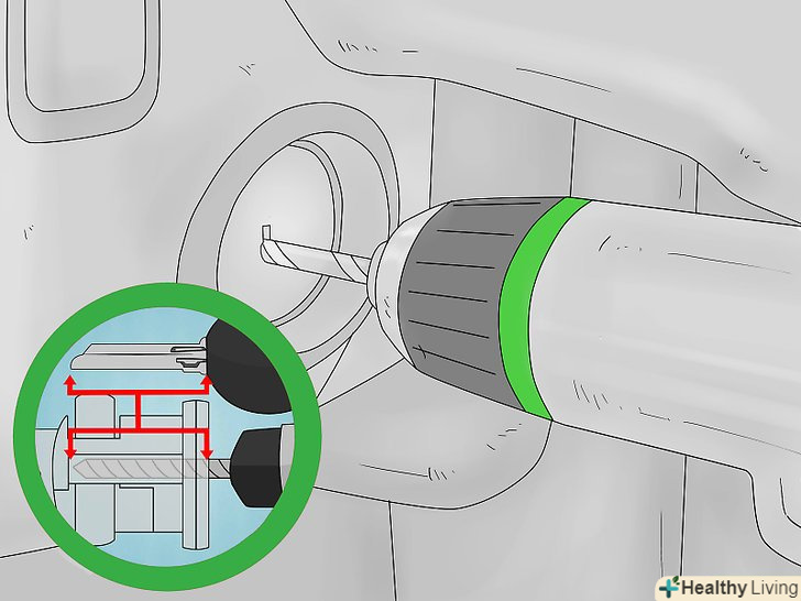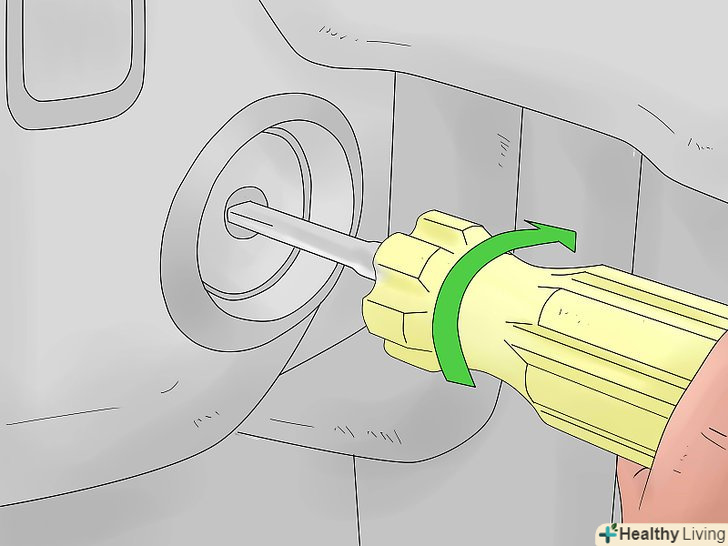 Вставте викрутку так, як якщо б це були ключі.вона необов'язково повинна глибоко заходити, оскільки Штифти вже зламані. Використовуйте викрутку так само, як ви використовували б ключ: щоб спробувати завести машину, просто проверніть викрутку на чверть обороту за годинниковою стрілкою.[8]- Увага: скориставшись даним методом, ви зламаєте замок запалювання, тому вашу машину зможе викрасти будь-хто, у кого є викрутка або міцний ніготь.