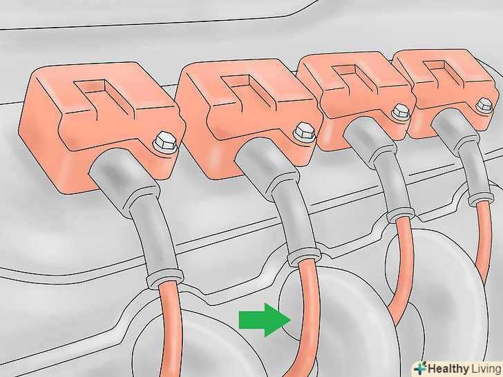 Відкрийте капот і знайдіть червоний дріт від котушки запалювання.дроти від свічки і від котушки запалювання знаходяться в задній частині майже всіх двигунів V8. У чотирициліндрових двигунах вони розташовані праворуч, в середній частині двигуна. У разі шестициліндрових двигунів все навпаки: ліва сторона, в середній частині двигуна.