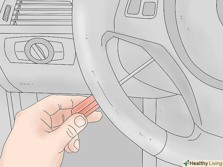 Розблокуйте кермо.вставте викрутку з плоскою головкою в середину рульової колонки зверху. Натисніть між кермом і колонкою. Вам потрібно відсунути замикаючі Штифти від керма. Не хвилюйтеся, тут можна застосувати грубу силу.- Замикаючі Штифти не зламаються і не приведуть до включення сигналізації. Ви зможете знайти котушку всередині.
