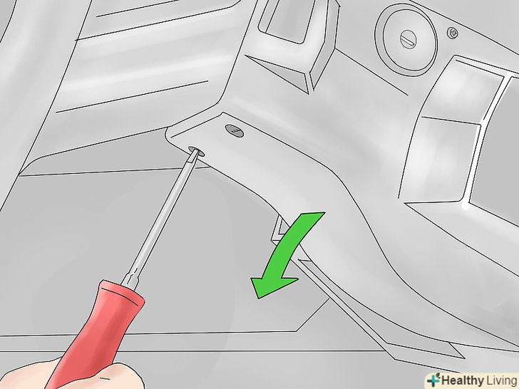 Зніміть пластикову кришку на рульовій колонці.кришка зазвичай кріпиться за допомогою прихованих пістонів кріплення або болтів з хрестоподібним шліцом Філліпс №2 (6 мм). Вийміть їх і відкрийте панель доступу.[1]- Як варіант, у випадку набагато старих моделей, ви можете зламати замикаючі штифти на запалюванні, забивши молотком викрутку з плоскою головкою в замкову щілину і повернувши її. Дуже складно - якщо взагалі можливо-виконати дану операцію вручну, але якщо ви вважаєте, що модель автомобіля досить стара для цього, то ви можете спробувати.