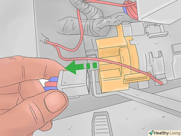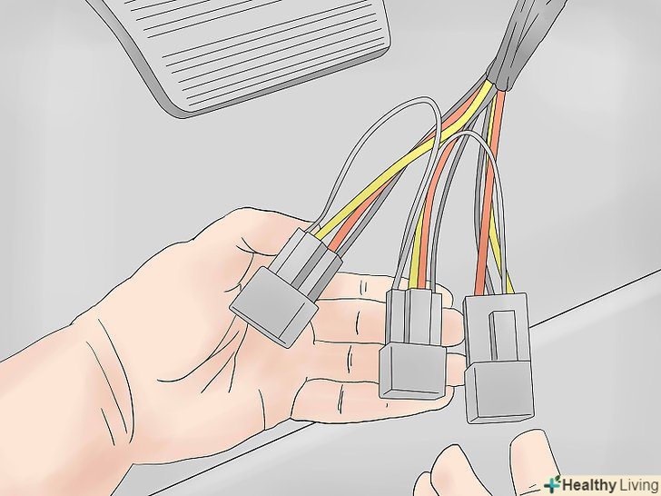 Знайдіть з'єднувач джгута проводки.знявши кришки панелей з рульової колонки, Ви повинні будете побачити переплетення електричної проводки. Не лякайтеся і навчитеся дізнаватися потрібний пучок. Зазвичай є три основних пучка проводки:- Проводка, що йде до кнопок на бічній частині рульової колонки, де розташована кнопка фар, круїз-контроль та інші індикатори;