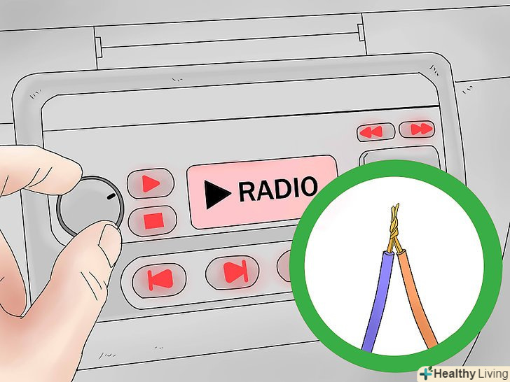 З'єднайте провід включення / вимикання запалювання з проводом батареї.у момент з'єднається загориться підсвічування на щитку, і запрацюють інші електричні компоненти. Якщо все, що ви хотіли, — це послухати радіо, то все готово. Якщо ж ви хочете поїхати куди-небудь, то вам потрібно буде створити іскру на дроті стартера, що може бути небезпечно.[3]