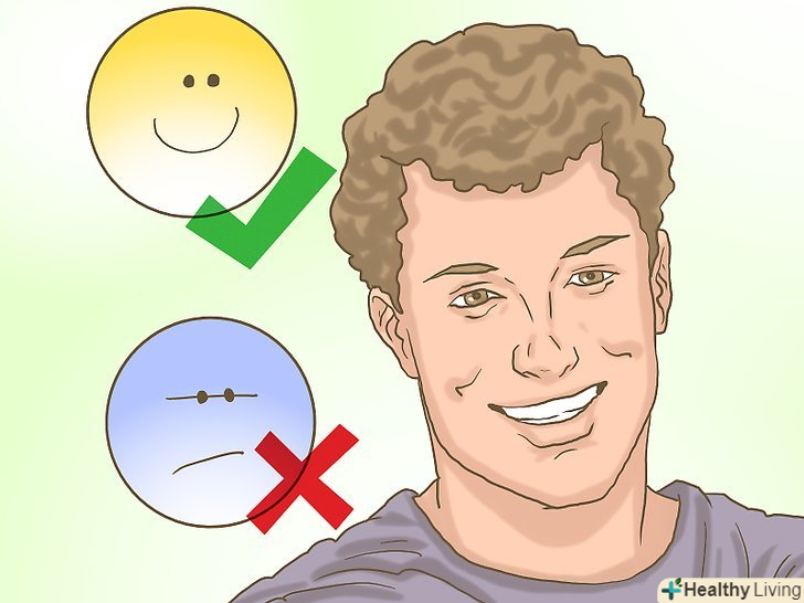 Посміхайтеся щиро.коли ви в поганому настрої, видавити з себе посмішку цілком можливо, проте люди можуть поставитися до вас насторожено, бачачи, що ця посмішка фальшива. Намагайтеся посміхатися від чистого серця.[4]- Щоб ваша посмішка була щирою, не посміхайтеся, якщо вам цього не хочеться. Інакше у людей складеться враження, що вам не можна довіряти.