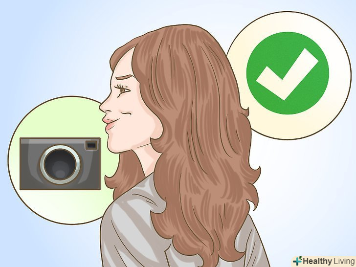 - Якщо ви віддаєте перевагу посміхатися з закритим ротом, спробуйте притиснути язик до неба. Це допоможе напружити м'язи обличчя і шиї для більш природної посмішки.[9]
