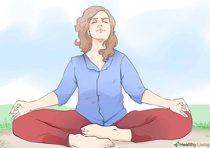Спробуйте медитувати.медитація може бути найпростішою-наприклад, просто послухайте своє дихання. Це дозволить вам відключитися від решти світу, забути про стрес і розслабити своє тіло.[10]- Наприклад, можна повторювати мантру багато разів поспіль. Мантра-це коротке слово або фраза, які допомагають зосередитися (наприклад, "ом"). Однак мантрою може бути все, що завгодно. Відпустіть свої думки і зосередьтеся на повторюваній фразі.[11]