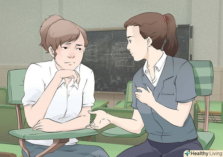 Поговоріть з ким-небудь.якщо ви поговорите з другом або родичем, вам стане легше. Так вам також буде простіше зрозуміти, що саме вас турбує.[2]- Виберіть людину, якій ви довіряєте. Говорити відверто може бути складно, якщо ви боїтеся, що людина засудить вас або стане висміювати. Поділіться своїми переживаннями з близьким другом, родичем, психологом, викладачем.