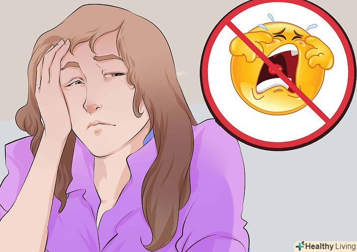 Не лайте себе.ви маєте право відчувати емоції. Сльози-це ознака емоцій. Якщо відчуєте, що готові розплакатися, не лайте себе — так ви тільки засмутитеся ще більше, і це вам нічим не допоможе.- Краще спробуйте прийняти себе. Наприклад, якщо ви зліться, скажіть собі так: "я злюся. Це природно. У мене можуть виникати такі емоції, однак я можу контролювати свою реакцію. Я не повинна плакати".