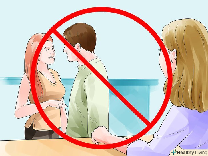 Слідкуйте за своєю мовою жестів.навіть ваша мова тіла може показати, що ви занадто намагаєтеся заволодіти простором іншої людини. Якщо ви поруч з другом, не стійте занадто близько, не потрібно занадто часто обніматися і торкатися людини, грати з його волоссям і прикрасами.- Якщо ви перебуваєте поруч зі своєю другою половинкою, обійми і поцілунки — це добре, але вам необов'язково постійно триматися за руки і не відлипати один від одного під час вечірки або іншої події.
