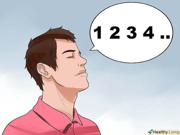 Дихайте глибоко. Ослабляйте реакцію боротьби або втечі, щоб змусити організм заспокоїтися.[8] навіть якщо ви не особливо впевнені в собі, глибокі вдихи допоможуть вам взяти себе в руки.- Наприклад, якщо ви переживаєте на співбесіді, то спробуйте впоратися з собою. Зробіть десять глибоких вдихів. Під час вдиху рахуйте до чотирьох, затримайте дихання на чотири секунди, а потім порахуйте до чотирьох під час видиху. Так ви зможете розслабитися і знайти впевнений вигляд.