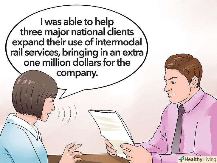 Говоріть впевнено .завдяки щирій і прямій манері спілкування ви будете відчувати впевненість в будь-якій ситуації. Позитивне спілкування дозволяє захистити інтереси як мовця, так і слухача. Всі потенційні учасники бесіди будуть націлені на взаєморозуміння. При розмові на роботі таке ставлення дозволяє враховувати кожну думку.- Наприклад, якщо ви хочете бути впевненою під час співбесіди, то сприймайте його як можливість застосувати свій досвід і знання на благо компанії. Скажіть: "судячи з вимог, вам потрібна людина, яка здатна розширити існуючий ринок змішаних залізничних перевезень. Під час роботи на попередньому місці я залучила в якості клієнтів три великих державних компанії, що дозволило істотно збільшити прибуток. Із задоволенням постараюся перевершити це досягнення на новому місці".