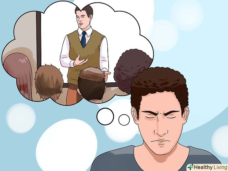 Уявіть себе в іншій ситуації.якщо вам складно зберігати впевненість в певних обставинах, то уявіть себе в більш зручній ситуації. Наприклад, ви не соромитеся розмовляти з однокласниками, але завжди відмовчуєтеся на вечірках. Під час вечірки уявіть, що ви перебуваєте в школі і говорите зі своєю подругою.- Переконайте себе, що ваші соціальні навички дозволяють відчувати себе впевнено з будь-якій обстановці, щоб взяти верх над негативними думками в ситуації з вечіркою.