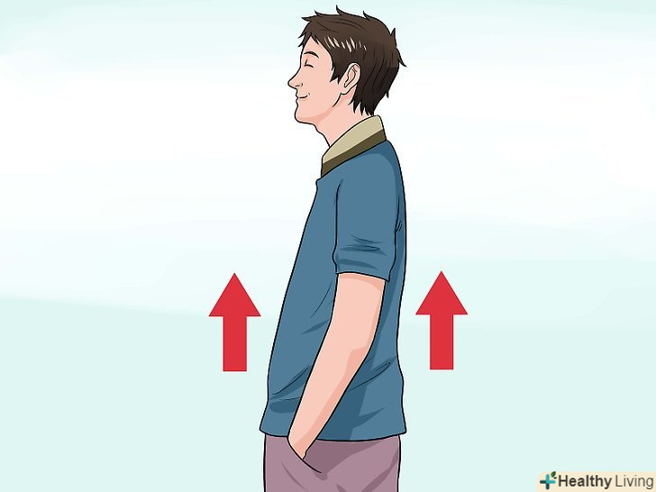 Використовуйте впевнену мову тіла.впевнена людина зазвичай не виглядає стривоженим або схвильованим. Прості кроки дозволять вам придбати впевнену мову тіла і діяти рішуче всупереч внутрішнім відчуттям:[5]- Стійте прямо, розправте плечі і спину;