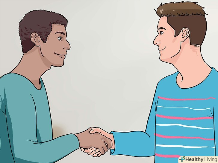 Міцно потискайте руку.при знайомстві з новою людиною дивіться в очі і міцно потискайте руку. Це покаже вашу впевненість і зацікавленість.[6]