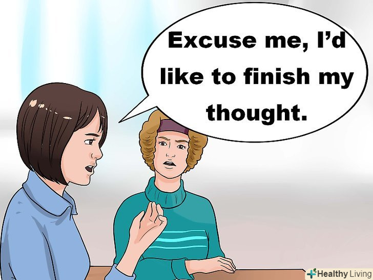 Говоріть за себе.не дозволяйте іншим говорити за вас, інакше вони легко скористаються вами в своїх інтересах. Відстоюйте свою точку зору і демонструйте, що не ви станете миритися з неповажним ставленням. Тільки так люди побачать вашу впевненість і проявлять заслужену повагу.- Наприклад, якщо вас перервали, то скажіть: "Вибачте, але я хотіла б закінчити свою думку".