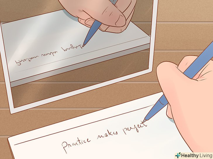 Напишіть своєю домінантною рукою перед дзеркалом, щоб мати уявлення, як виглядає лист протилежною рукою.це дасть вам можливість візуалізувати метод і налаштувати мозок на роботу з недомінантною рукою.