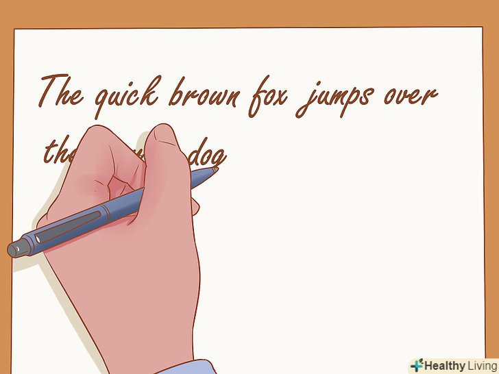 Тренуйтеся щодня протягом, як мінімум, місяця або довше.незабаром ви навчитеся швидко писати протилежною рукою, допускаючи всього пару помилок.- Напишіть протилежною рукою:" З'їж ще цих м'яких французьких булок, та випий [ж] чаю", або подібну панграму (пропозиція, в якому містяться всі букви алфавіту).