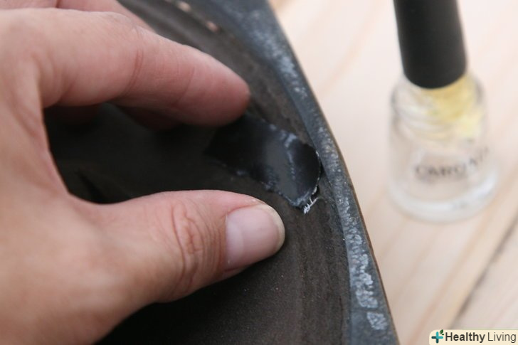 Нанесіть лак для нігтів на краю латки. нанесіть достатній шар лаку для нігтів на краю латки.