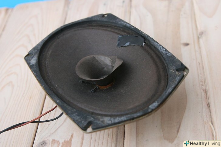 Роздобудьте матеріал для ремонту.більшість дифузорів зроблені з паперу або тонкого пластику. Щоб заклеїти дірку, буде потрібен матеріал приблизно таких же щільності і виду, але трохи більшого розміру, ніж сама діра. Якщо не вийде знайти тонкий пластик, такий як є в деяких динаміках, можна використовувати папір.