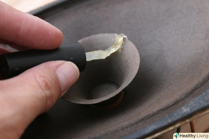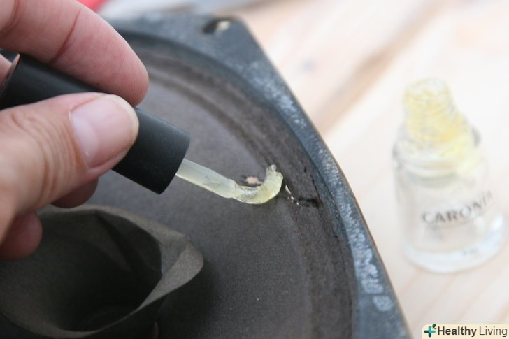 - Переконайтеся, що всі краї латки або розриву на дифузорі надійно закріплені лаком. Будь-який шматочок Краю, що звисає в повітрі, призведе до дзвінкого звуку в динаміці.