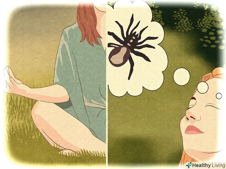 Уявіть те, що ви написали під цифрою 1 (пухнастий павук в зоомагазині).спробуйте уявити собі його протягом 30 секунд.- Якщо ви відчуєте сильне занепокоєння, зупиніться і поверніться до техніки релаксації. Припиніть, якщо у вас виникне паніка або ви не зможете побороти свої почуття.