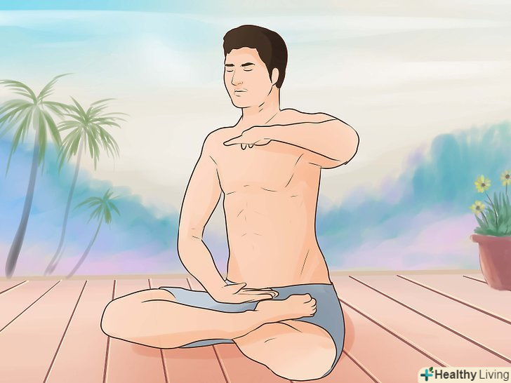 Намагайтеся займатися медитацією щодня.ви можете займатися медитацією самі в будь-який час доби. Для цього немає необхідності ходити на заняття. Тривалість медитації не настільки важлива, як регулярне її виконання і перехід в стан релаксації.- Дихайте глибоко і повільно через ніс. При вдиху і видиху зосередьтеся на відчуттях і звуках. Коли ваш розум почне блукати, знову сконцентруйтеся на диханні.