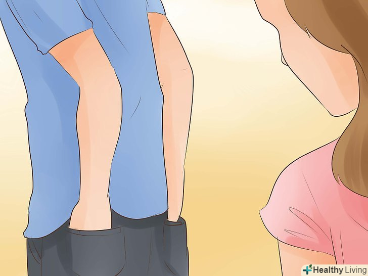 Слідкуйте за рухом рук.коли людина говорить або відповідає на питання, він починає рухати руками більше звичайного.[13] вони також частіше торкаються речей або інших людей, коли відповідають на особисте питання або знаходяться близько один до одного.[14]- Приховування рук, наприклад, в кишені або за спину, може свідчити про обман.