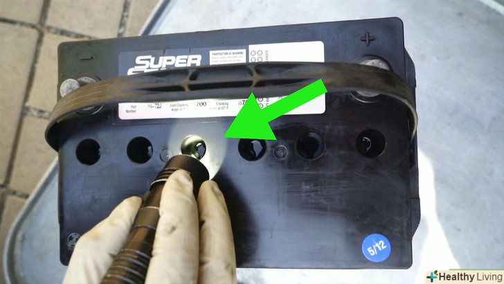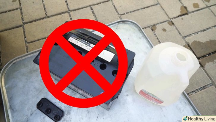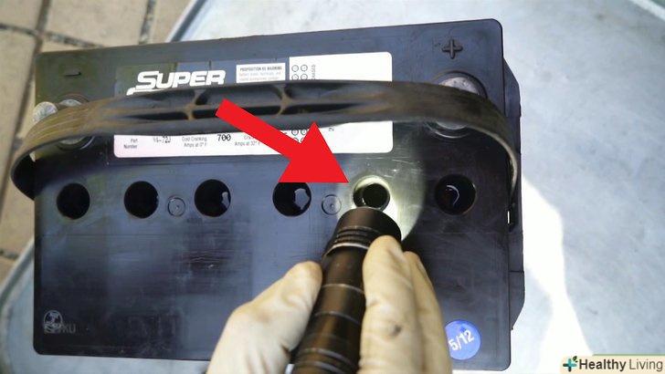 - Одягніть окуляри для захисту очей.електроліт в акумуляторі-це сірчана кислота, тому дуже важливо захистити очі, щоб в них не потрапила навіть крапля цієї рідини. Пам'ятайте, що ви можете отримати серйозну травму або навіть втратити зір.[2]