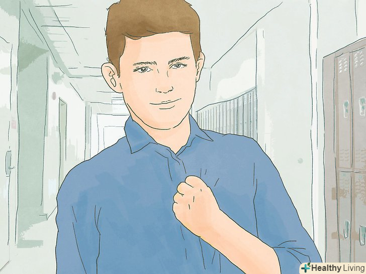 Демонструйте сміливість у протистоянні цькуванню.якщо ви маєте справу з цькуванням, вам необхідно випромінювати сміливість і впевненість. Так ви обдурите себе (і інших), прикинувшись, що нічого не боїтеся.[15] Людям, які знущаються над іншими, подобається, коли їх бояться, так що не доставляйте їм цього задоволення. Дійте впевнено (навіть якщо ви не особливо впевнені в собі).- Якщо над вами продовжують знущатися після того, як Ви дали їм відсіч, зверніться за допомогою до вчителів або батьків. Розуміння того, коли пора звернутися за сторонньою допомогою, саме по собі є проявом сміливості. Це демонструє вашу чесність з самим собою щодо реальної оцінки ситуації.