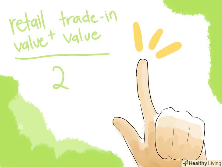 Для визначення ринкової ціни використовуйте вартості нового і вживаного автомобіля.ринковою ціною буде середнє між ціною нового і ціною вживаного автомобіля.- Складіть ці числа і поділіть на 2, щоб отримати ринкову ціну. Наприклад, якщо вартість нового автомобіля $7000 (245000 руб), а вживаного - $5000 (175000 руб), то сума дорівнює $12000 (420000 руб). Розділіть 12000 на 2 і отримаєте ринкову вартість автомобіля рівну $6000 (210000 руб).