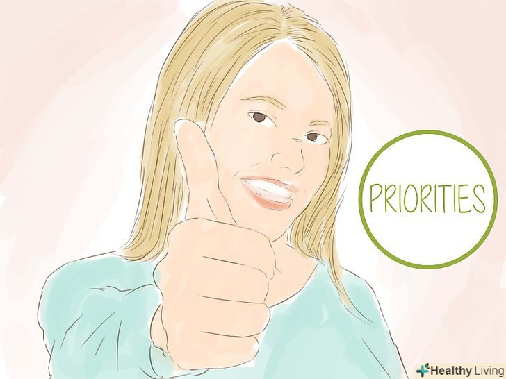 Скоротіть кількість зобов'язань.якщо ви постійно поспішаєте виконати нескінченний потік завдань або розриваєтеся між різними напрямками, то прийшов час переглянути свої пріоритети. Проаналізуйте справи, які щодня забирають Ваш час. Скоротіть такий список до декількох найголовніших речей, яким слід приділити увагу.[18]- Іноді складно відмовитися від зобов'язання, але вам доступні такі варіанти: продовжувати все виконувати на шкоду сну, часу з рідними та іншим цілям, давати не кращий результат або не доводити справи до кінця або все-таки відмовитися від несуттєвих завдань.