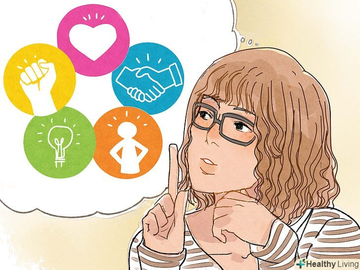 Ставте перед собою цілі, які відповідають вашим особистим цінностям. після того як ви складете для себе короткий список основних цінностей, потрібно відповідно до цих цінностей поставити собі цілі, використовуючи технологію SMART. Поставивши перед собою цілі, які дозволять вам жити в злагоді зі своїми цінностями, щодня робіть один наступний крок на шляху до своїх цілей. Цілі S. M. A. R. T., або розумні цілі:[13]- Specific-конкретні-чітко дайте собі відповідь на питання"Хто, що, коли, де, як і чому"