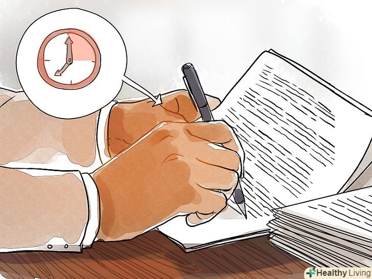 Прийміть рішення працювати короткими періодами часу.вас легко може налякати велике завдання, якщо ви будете думати про те, скільки часу доведеться присвятити на його виконання. Однак для більшої продуктивності якраз короткочасні зусилля приведуть до більших результатів, ніж Довготривалі. Насправді, дослідники виявили цикл, названий ультрадіанним ритмом, протягом якого ваш організм переходить від високої до низької ступеня активності.[10]- Скажіть собі, що будете працювати над виконанням завдання по 90 хвилин в день, потім зробіть перерву. Якщо ви будете робити саме так, це дозволить вам працювати чітко і усвідомлено, а потім у вас буде час для відпочинку і відновлення сил перед початком нового витка в роботі.