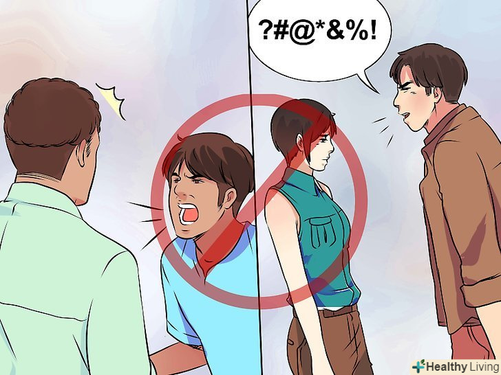 Відчуваючи гнів, намагайтеся не кричати і не лаятися. весь час від часу відчувають гнів, і якщо ви на когось розлютилися, найкраще спокійно пояснити, що саме вас розлютило, або відсторонитися від ситуації і повернутися до розмови після того, як ви заспокоїтеся.- Ніхто - ні близькі друзі, ні родичі, ні випадкові знайомі – не сприймуть позитивно крик на свою адресу. Така поведінка лякає і, швидше за все, лише посилить конфлікт.