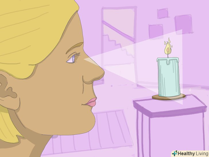 Виберіть предмет, на якому ви зосередитеся.такий предмет повинен знаходитися приблизно в 1,5-2 метрах від вас. Це може бути кут картинної рами на стіні, пляма, дерево за вікном або схожий предмет.[4]- Дивіться в цю точку і повторюйте про себе: "мої повіки важчають. Вони опускаються вниз як під дією важкого вантажу. Скоро мої повіки так поважчають, що очі закриються".