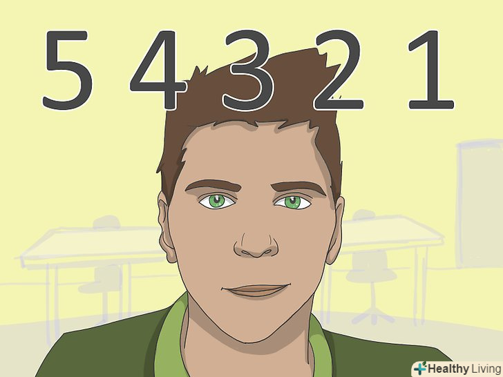 Порахуйте від п'яти до одного, щоб вийти зі стану трансу. коли ви відчуєте, що досягли глибокого гіпнотичного стану, відчуваєте повну розслабленість і запам'ятали всі свої візуальні підказки, то виведіть себе зі стану трансу зворотним відліком від п'яти до одного.[7]- Перед початком відліку скажіть собі наступне:"Коли я дорахую до одного, мої очі будуть відкриті, а я прийду в себе". У момент початку відліку ваші очі почнуть відкриватися і на рахунок один вони будуть повністю відкриті, а до вас повернеться пильність.