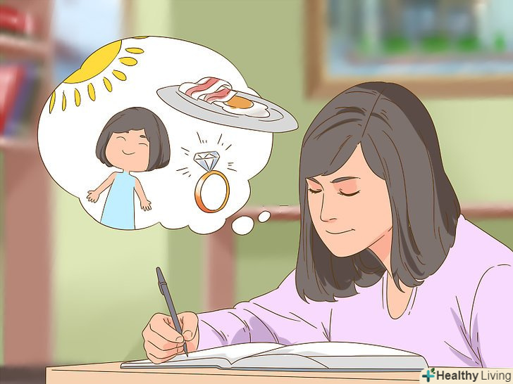 Звикайте мислити позитивно.візуальне уявлення може здатися якоюсь дурістю, але ж його ефективність доведена.[9] даний метод використовувався багатьма відомими людьми, серед яких Мухаммед Алі, і допоміг їм досягти успіху.- Візуалізація допомагає мозку підготуватися до фактичної фізичної дії, будь то підвищення зарплати або запрошення того милого хлопця на побачення. Візуалізація допомагає набути впевненості в собі, підвищити мотивацію і підготуватися до успіху.