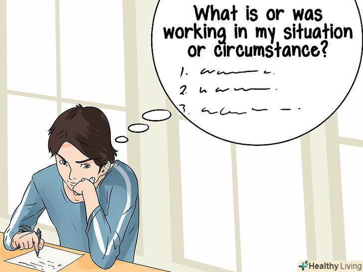 Проаналізуйте свої невдачі і успіхи. ви не можете змінити те, що вже сталося, тому, якщо події розвиваються не за планом, не турбуйтеся, а задумайтеся: «що я робив правильно в даній ситуації або обставинах?"[3]- Запишіть кожен аспект. Вказуйте всі свої успіхи, навіть незначні. Вечорами можна записувати все хороше, що сталося з вами за день. Зосередьтеся на позитивних моментах, щоб наповнити своє життя позитивом![4]