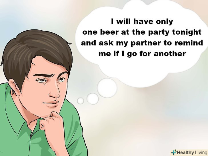 Зверніться за допомогою.якщо вам складно говорити чому-небудь «ні", наприклад, ще одній сигареті або шматку торта, попросіть свого друга або партнера доглядати за вами. Підзвітність іншій людині не залишить Вам вибору.[16]- Наприклад, якщо на вечірці ви намагаєтеся стежити за кількістю вживаного алкоголю, попросіть свою половинку після одного напою нагадати вам про ваш план.