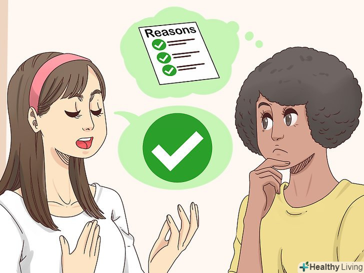 Враховуйте причини, за якими у людини може бути інша думка.це особливо доречно в делікатних питаннях і табуйованих темах. При розгляді питання задумайтеся, чому у людини можуть скластися певні погляди. Спробуйте знайти 2-3 аргументи на користь такої думки, навіть якщо ви його не поділяєте.[11]- Якщо ви не підтримуєте обов'язкове страхування здоров'я, то не слід автоматично відкидати доводи прихильників такого рішення. Можливо, з ними траплялися ситуації, коли вони не змогли отримати необхідну допомогу через відсутність страховки і необхідної суми.
