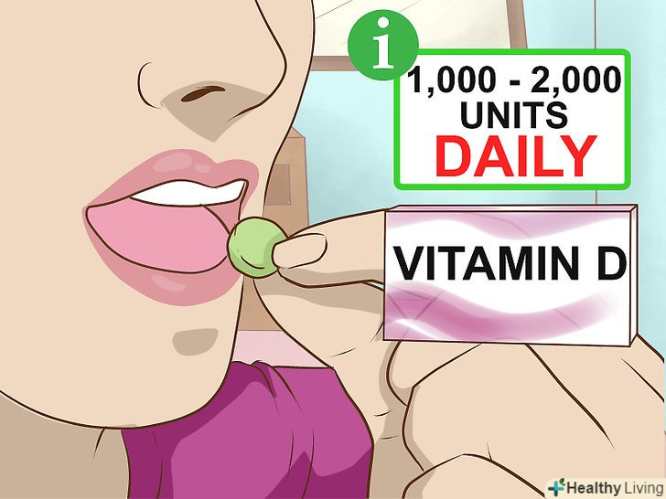 Переконайтеся, що щодня отримуєте від 1000 до 2000 одиниць вітаміну D. вчені виявили зв'язок між низьким рівнем цього вітаміну і повільною когнітивною обробкою і діяльністю мозку. Якщо ви не проводите на сонці від 15 до 30 хвилин кілька разів на тиждень, поговоріть з лікарем про прийом добавок.[6]