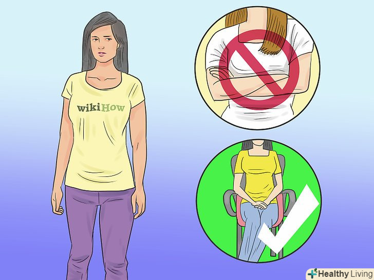 Прийміть нейтральну беземоційну позу.те, як ви стоїте або сидите, не повинно видавати Ваших емоцій.- Не схрещуйте руки. Ця поза виглядає оборонно. Руки повинні знаходитися з боків в розслабленому стані.