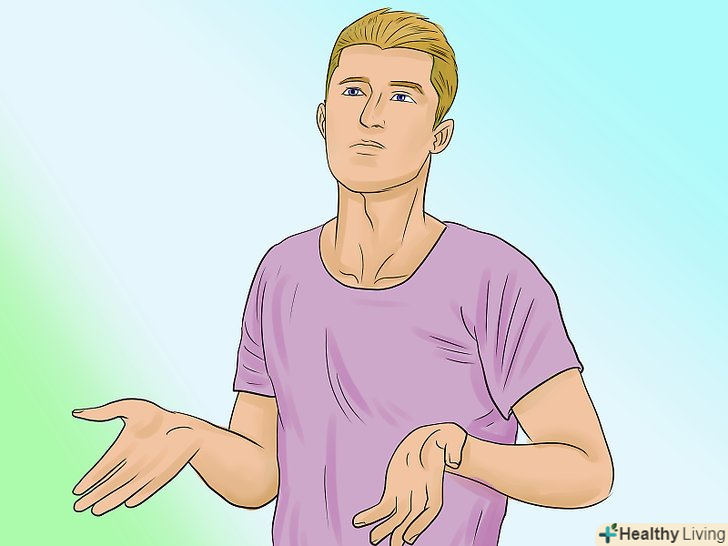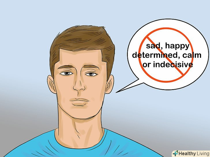 Розслабте очі і рот.як не дивно, саме очі і рот здатні висловити безліч емоцій. Тому так важливо весь час контролювати їх стан. Найкращий спосіб це зробити-працювати над тим, щоб вони нічого не висловлювали. "Порожнє" обличчя - той тип виразу, який люди використовують, щоб оточуючі трималися на відстані. Такий вираз обличчя можна помітити практично в будь-якому переповненому ліфті. Грубо кажучи, це щось на зразок знака"не турбувати".[1]- На хвилинку спробуйте свідомо розслабити м'язи обличчя. Ви здивуєтеся, наскільки сильно вони можуть бути напружені, навіть коли ви не висловлюєте ніяких емоцій.