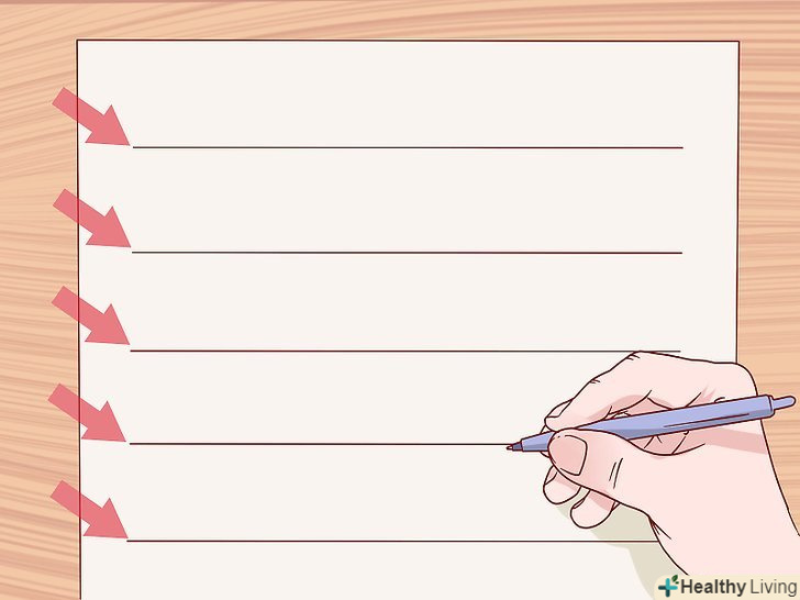 Проведіть п'ять вертикальний ліній.вони повинні розташовуватися на рівній відстані один від одного. Вам потрібно буде писати в отриманих колонках, тому переконайтеся, що скрізь буде достатньо місця.