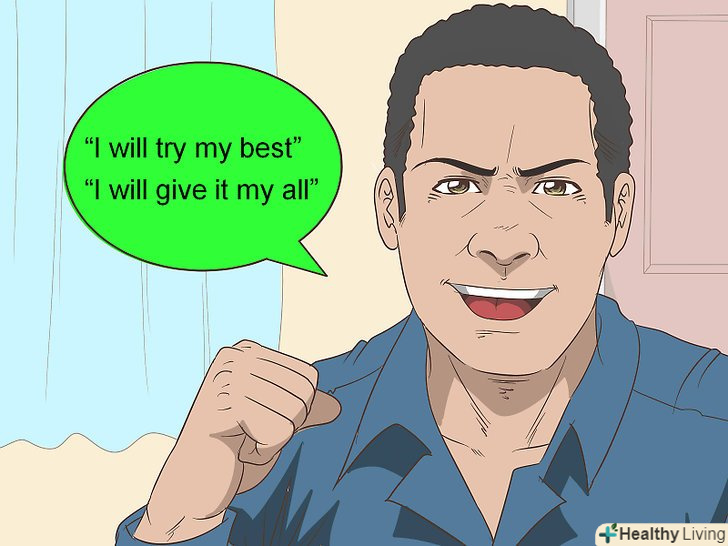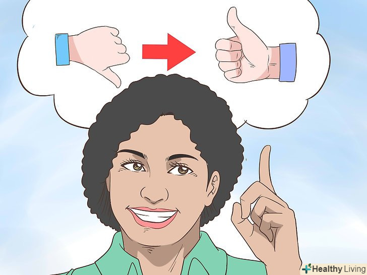 - Замість цього краще переосмислити події, використовуючи позитивну мову. Зробіть це, навіть якщо вам не хочеться дивитися на речі з позитивного боку. Замість того щоб говорити щось на кшталт: "Я ніколи не досягну успіху" змініть свої думки на більш позитивні і скажіть так: "я зроблю все від мене залежне" або "я докладу максимум зусиль".[12]