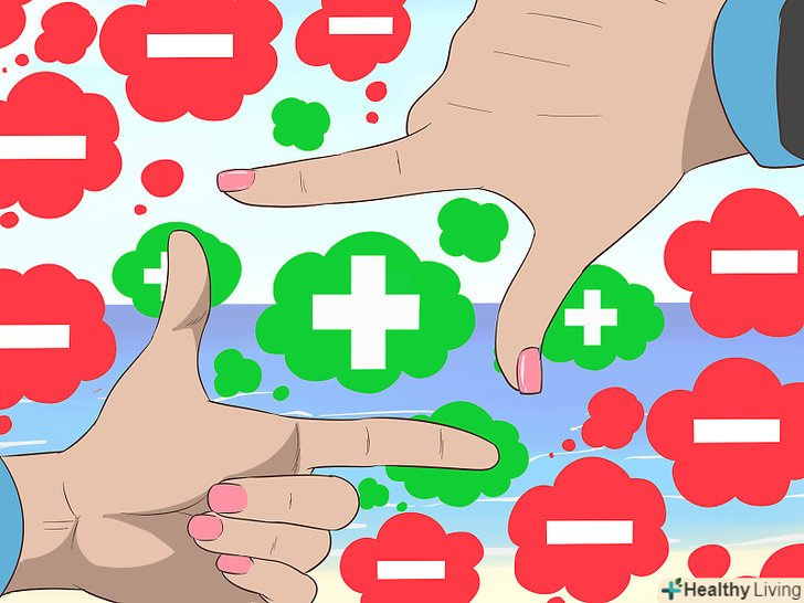 Не роздумуйте занадто багато над життєвими проблемами. коли ви занадто роздумуєте над тим, що вам не подобається, – недоліком грошей, відчуттям, що у вас зайва вага, що ви занадто слабкий або недооцінений, швидше за все, цим ви привернете в своє життя ще більше невдач і нещасть. Це може статися через ті ж самонавіювання передбачень, коли ви вважаєте, що щось станеться певним чином, і так і відбувається, або тому що вас долає депресія і ви думаєте, що не можете змінитися, або просто тому що зайві роздуми можуть підживлювати негативні почуття.[15][16][17]- Замість цього постарайтеся зосередитися на позитивних речах в житті або на змінах на краще.