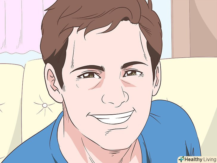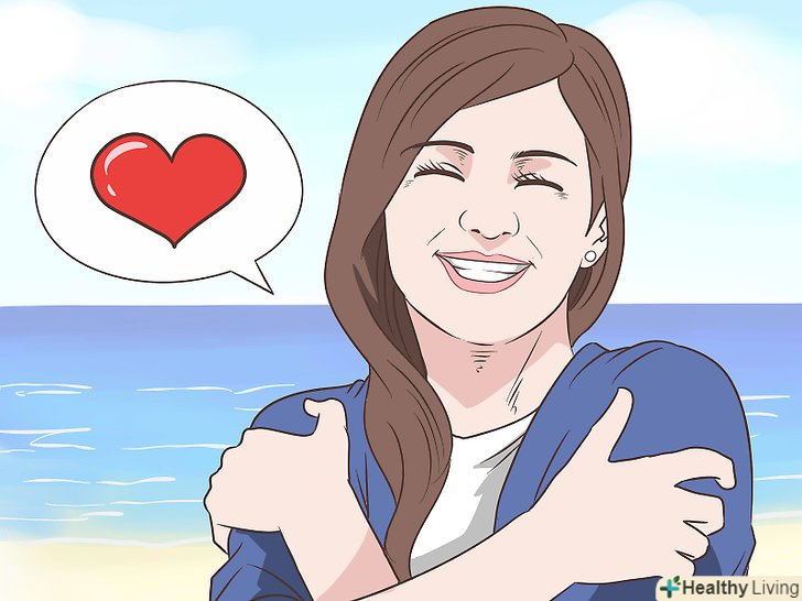 Посміхайтеся.якщо у вас не виходить прийняти більш позитивне ставлення до життя і себе, постарайтеся напустити на себе щасливий вигляд. Змусьте себе посміхатися кілька хвилин кожен день, поки думаєте про життя і себе. Дослідження показують, що між лицьовими м'язами і емоційним станом людини існує двосторонній зв'язок – хоча зазвичай ми відчуваємо щастя і потім посміхаємося, ми також можемо спочатку посміхнутися, а потім вже відчути щастя.[8]- Якщо вам потрібно трохи допомоги, щоб посміхнутися, спробуйте засунути олівець між зубами, щоб ластик знаходився у напрямку до одного куточка рота, а кінчик олівця - до іншого; якщо тримати олівець між зубами таким чином, ви обов'язково посміхнетеся.