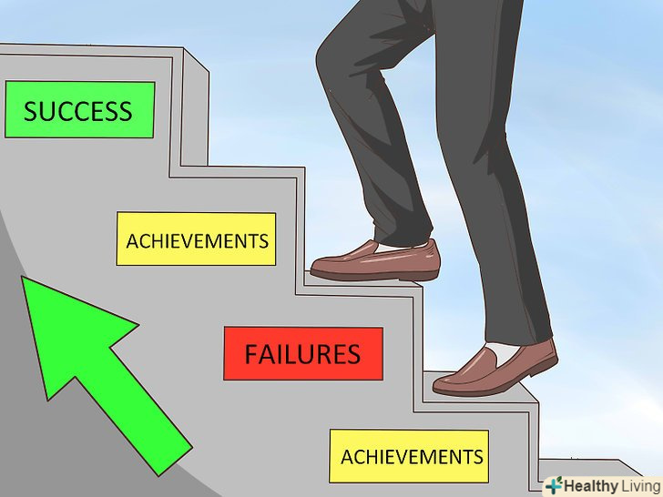 Сприймайте невдачу як можливість навчитися.відмінна думка, На яку можна спертися-ваші таланти і здібності не залишаються незмінними, але ви можете вчитися і рости на своїх помилках. Можна використовувати силу такої ідеї, щоб поліпшити свої навички, стати більш обдарованим і позитивно налаштованим до життя.[7]- Якщо ви будете сприймати невдачі як можливість вчитися і розвиватися, менш імовірно, що ви станете песимістично зустрічати поразки на вашому шляху.