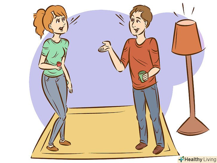 - Уникайте людей, які виглядають так, ніби вони щось бурхливо обговорюють один на один. Ви ризикуєте спровокувати незручне мовчання своєю появою. Поспостерігайте за мовою тіла цих людей. Завдяки цьому ви зможете визначити, чи варто вам підходити до них. Якщо вони стоять лицем до лиця, активно жестикулюють і зберігають зоровий контакт, краще не підходити до них.[3]